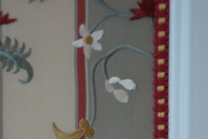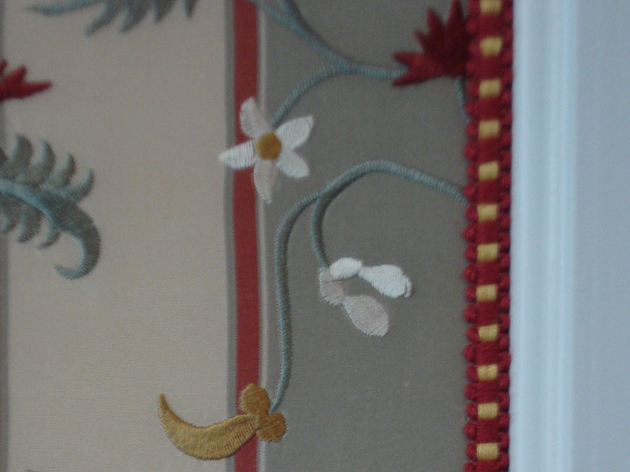 Rondom ramen, deuren, openhaarden en dergelijke kan vrijwel iedere stof zo blind worden afgewerkt, zodat een koord of galon niet noodzakelijk is. Ter verfraaiing kan deze afwerking uiteraard alsnog worden aan gebracht.