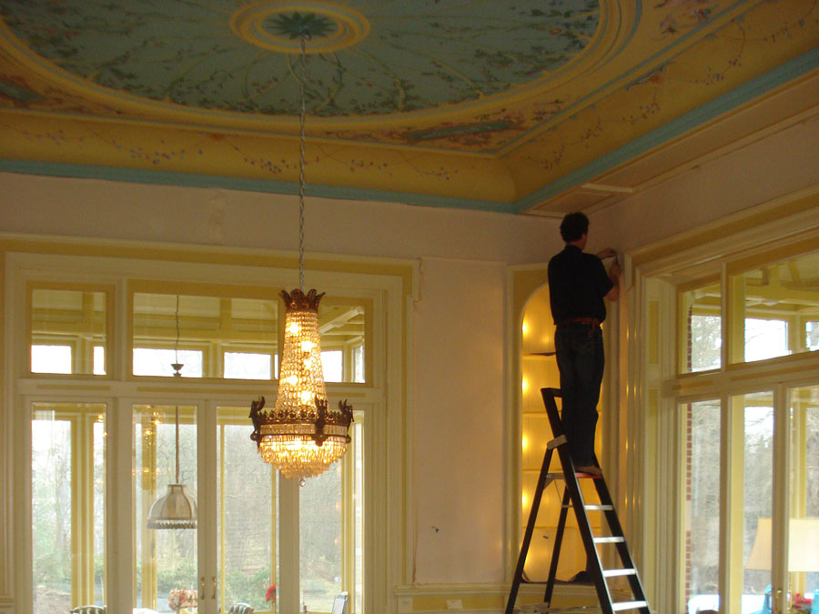 Ook voor het aanbrengen van een linnen onder bespanning met in geschuierde vellen grondpapier en grondpapier in banen kunt u bij ons terecht. Deze techniek word vooral toegepast indien men een gespannen (papier) behangen wand wil creëren.