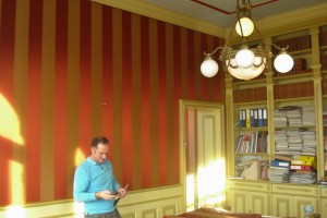 Daarna maken wij de bestaande wanden gereed voor bekleding. Uw oude stof en bevestigings-materialen worden verwijderd en de betengeling waar nodig gerepareerd. Eventueel kan een ademende folie worden aangebracht. Dit is tegen het doorslaan van vuil en vocht door toedoen van tocht achter de wandbespanning. Vervolgens kunnen de molton en de stof volgens het geheim van de Smit bevestigd worden met het al eerder uniek genoemde latten systeem. Het geheel geeft een strak aanzien en een zeer chique effect, met een akoestiek die niet te evenaren is.
